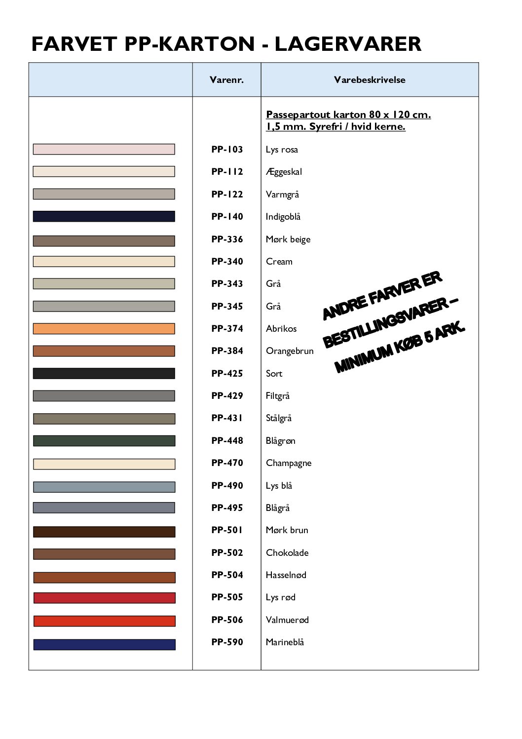 FARVET PP-KARTON 80 X 120. 1,5 MM. / SYREFRI / HVID KERNE